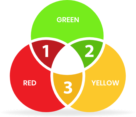 In the ScoreUs system, visual management is represented by three colors, Red, Yellow, and Green, and three arrows up, down, and flat .